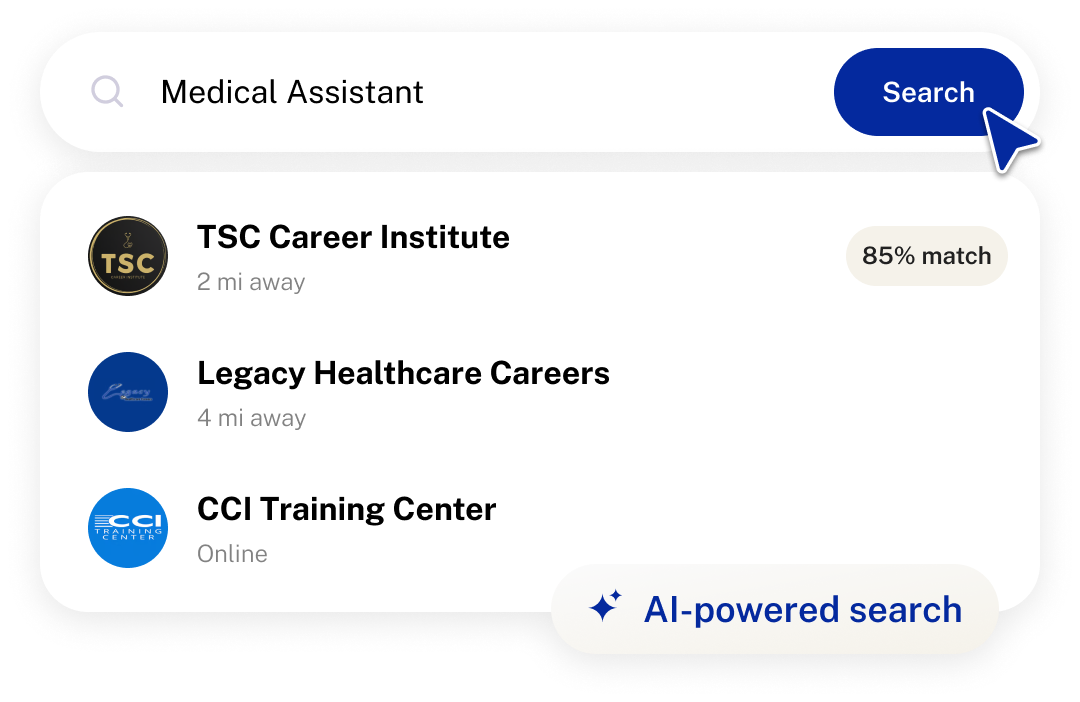 Our AI-powered search, ranking algorithm, and extensive filters help students find programs that fit them