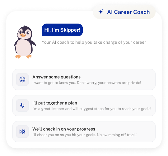 Skipper, our AI career coach, provides ongoing support to keep students on track through enrollment